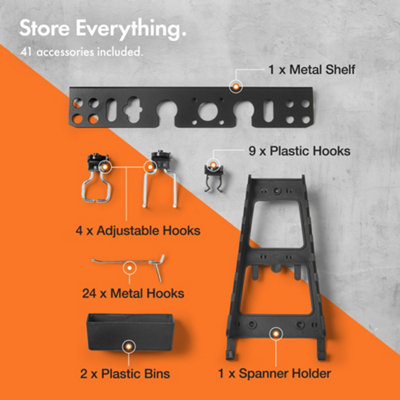 Product Name: Vonhaus 50 piece wall mounted plastic pegboard and shelf tool organizer top