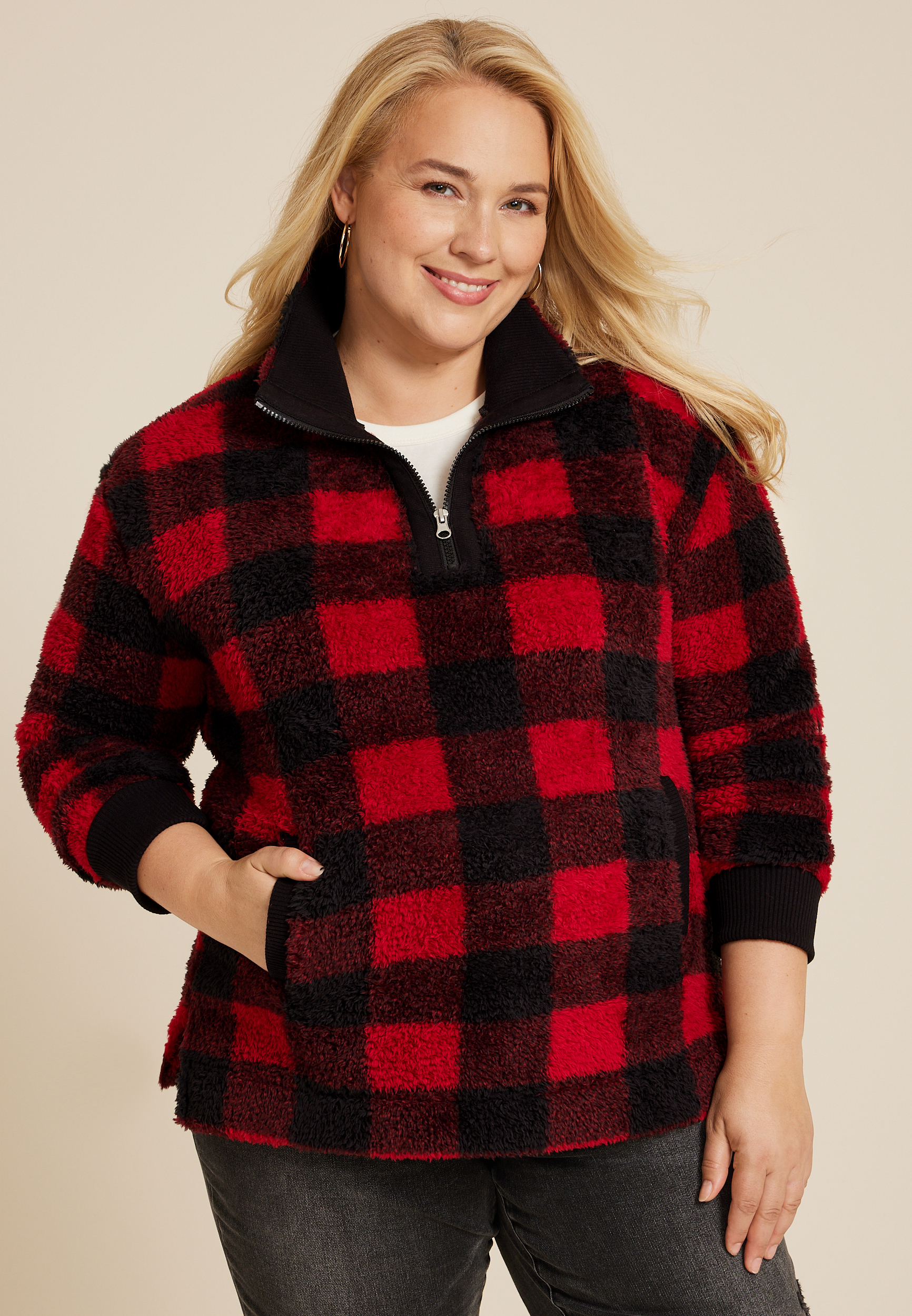 Product Name: Buffalo plaid hoodie plus size top