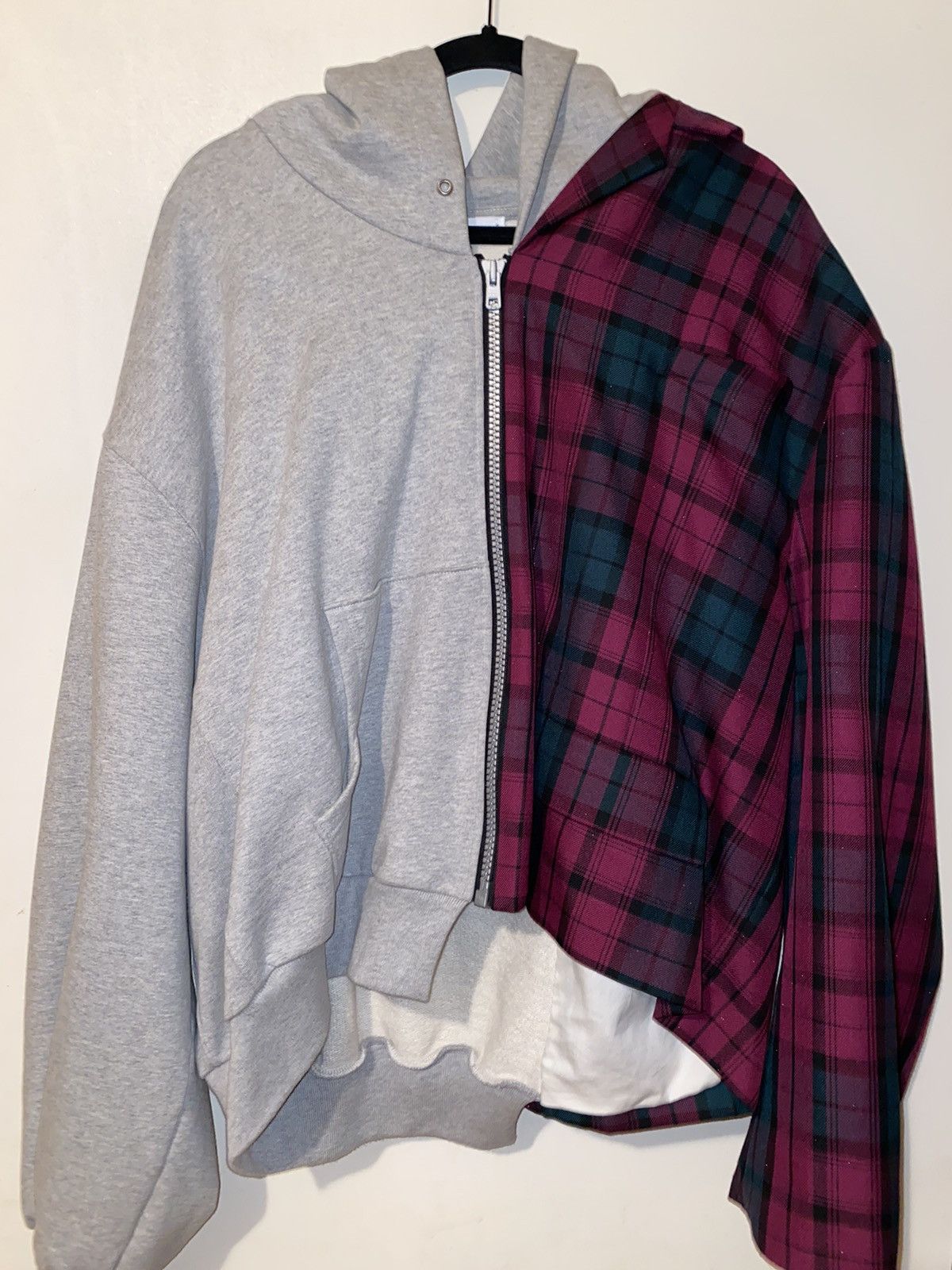 Product Name: Half plaid hoodie top