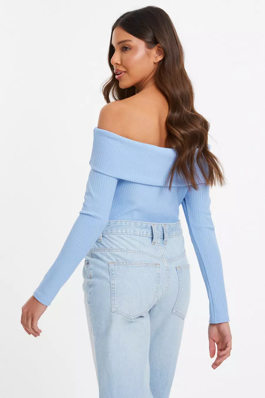 Product Name: Light blue bardot top top