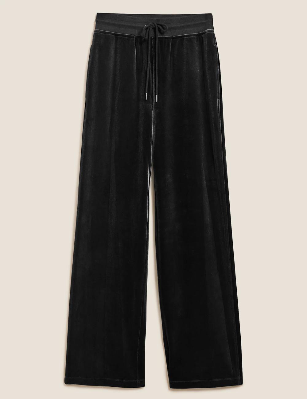 Product Name: Black velour wide leg joggers top